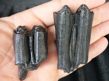 Bison and their fossil relatives were found in Florida in great numbers during the Pleistocene epoch. Despite not showing up in the fossil record until 500,000 years ago in Florida, they were widespread and grew to even larger sizes than bison today with huge horns that spread 6 ft from tip to tip. Here are some Bison fossils that we found on some of our fossil hunting tours.
