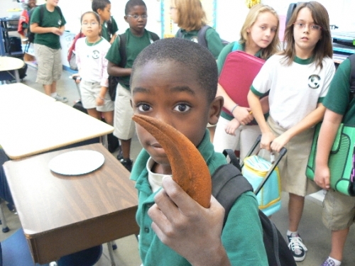 Part Two: After the museum tour(s), we’ll take a break for lunch and then do an on-site fossil dig for lots of real Florida fossils the students will get to keep! We’ll give each student approximately a cup of our fossil-rich gravel from the Peace River where we do our regular fossil-hunting tours. This gravel is loaded with Miocene and Pleistocene fossils. Most commonly found are shark teeth but there are often stingray fossils, fish, whale, dolphin, and land mammal bones and teeth from Ice-Age Florida. Typically, 20-30 fossils can be found in a single cup; many of the shark teeth are 1/2″ to 1-1/2″ long.